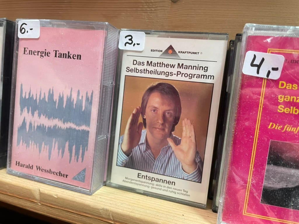 It was the first nice day of the year and a Saturday. I need to sit on the floor somewhere empty. We did, at a new age book store, est. c.1970’s, admired physical media, and complained about astrology.