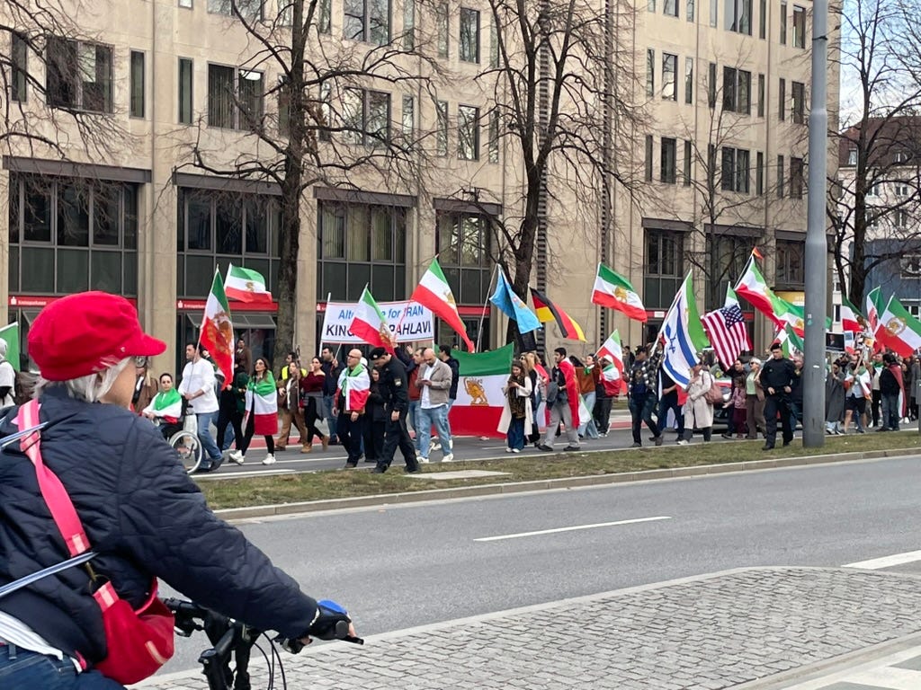 We came across one of the most surreal political demos in Europe— it was the first time I have ever seen MAGA hats worn in the EU.