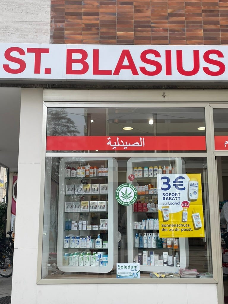 Exiting the studio, an Apotheke called Blasius.