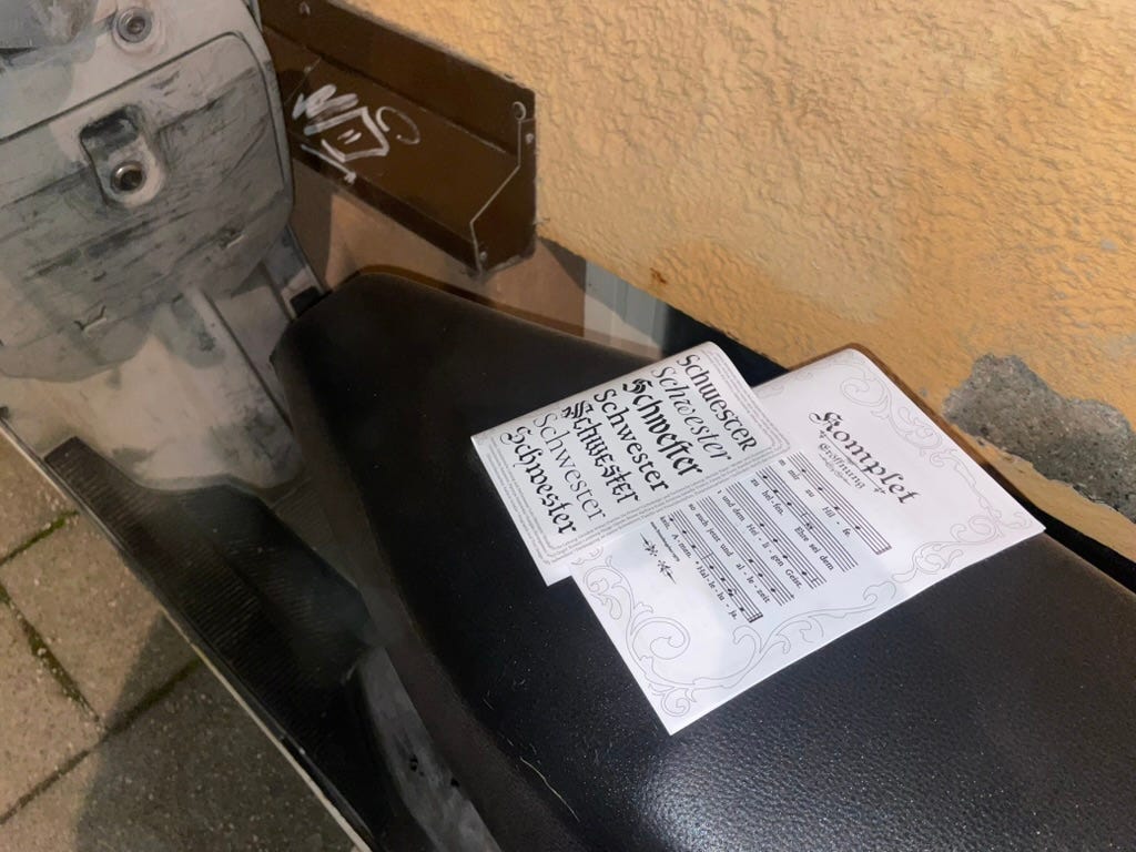 BVG is on strike again. Sad to learn I’m breaking even on my trip to Munich, where I will be paid to be an extra in an experimental theater piece about a convent, Lulu Obermayer’s Schwester.